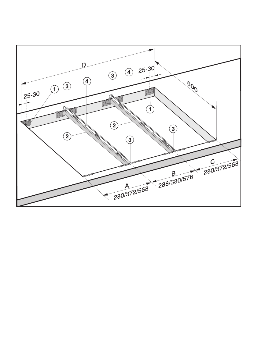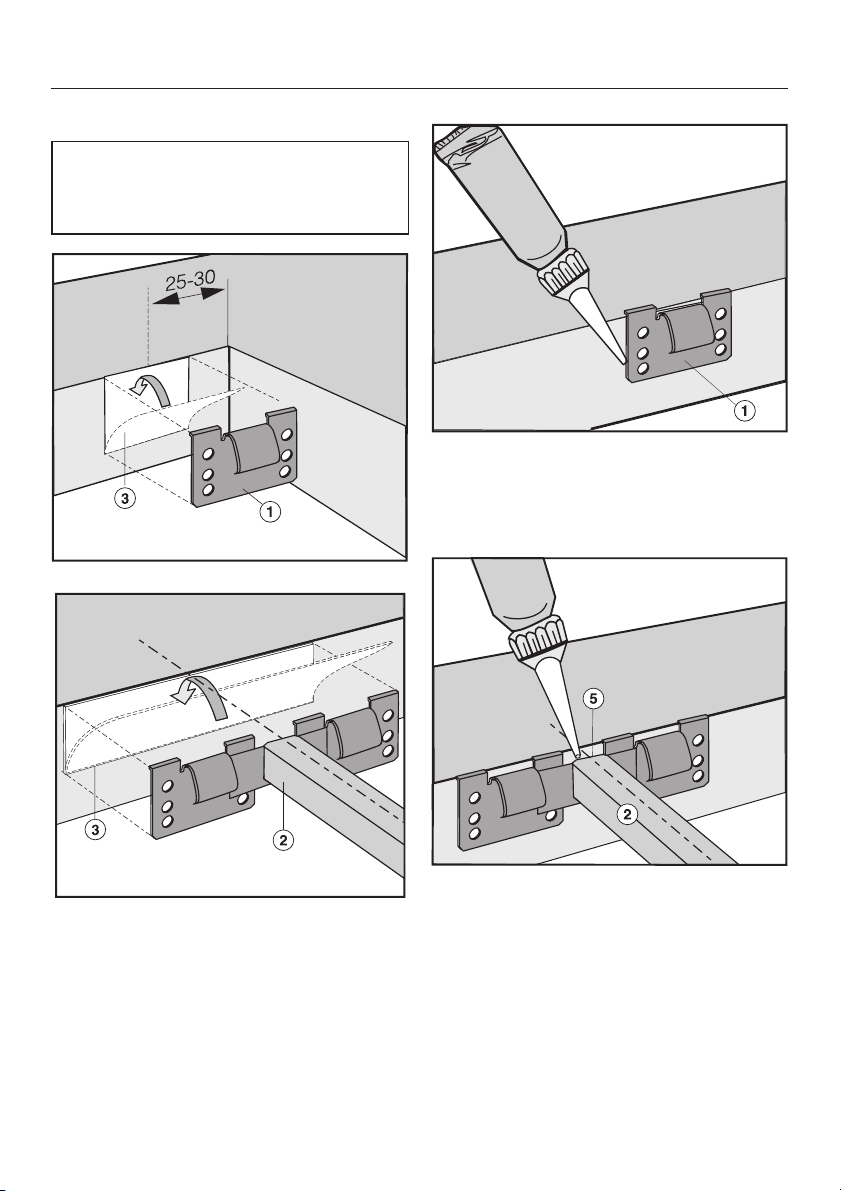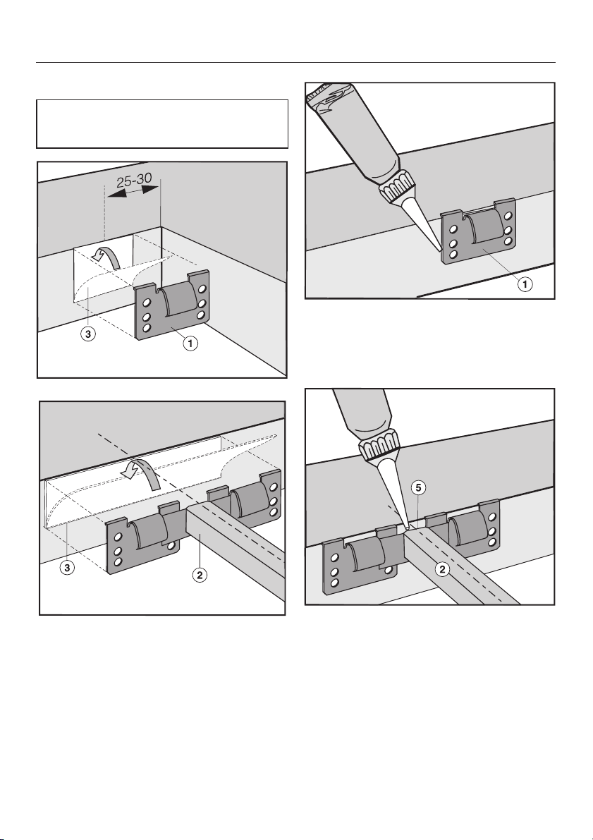 Le fughe a e lo spazio tratteggiato sotto la superficie di appoggio dell'apparecchio devono essere lisci e in piano