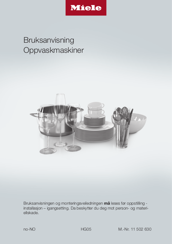 Les monteringsveiledningen og bruksanvisningen nøye før du stiller opp oppvaskmaskinen og tar den i bruk. Begge gir viktige opplysninger om innbygging, sikkerhet, bruk og vedlikehold. På denne