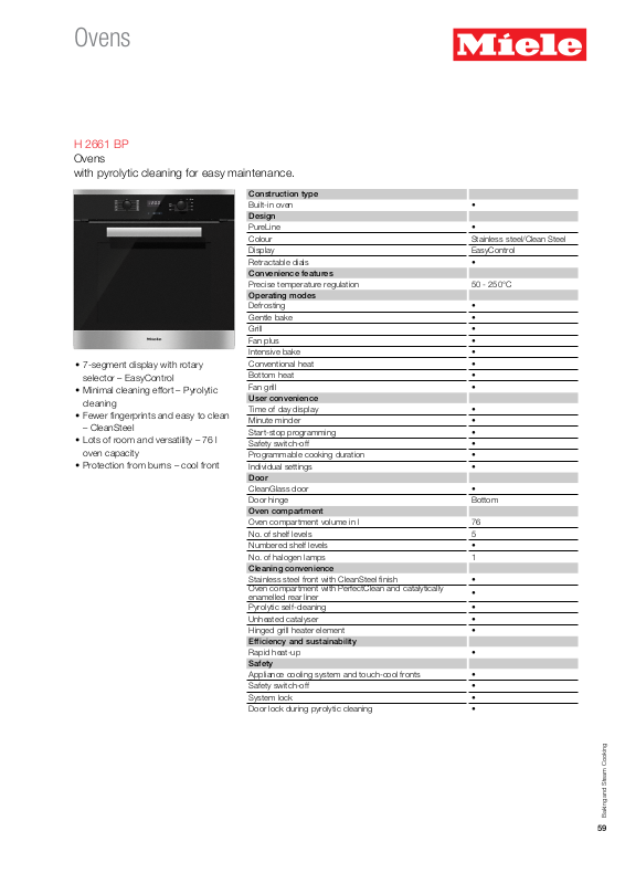 • Minimal cleaning effort – Pyrolytic