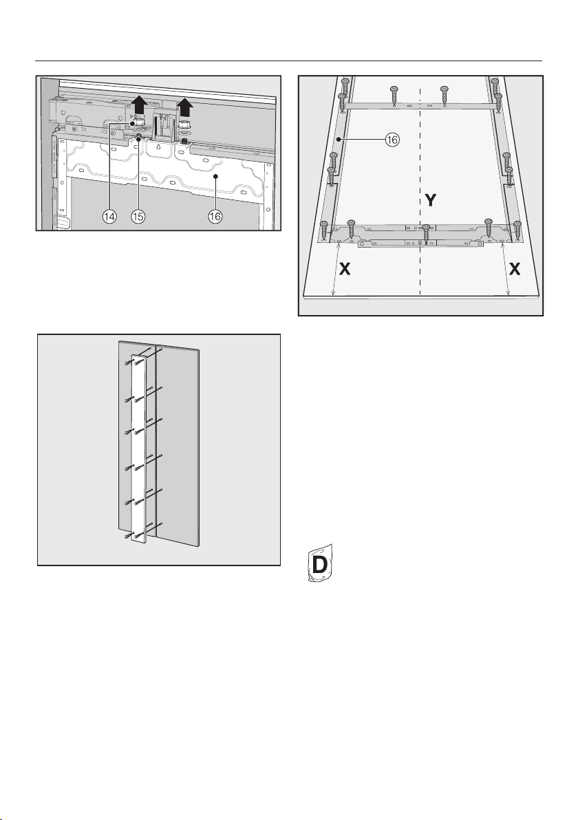 Hold skapdøren lukket til kjøle-/fryseskapet er bygget inn og festet