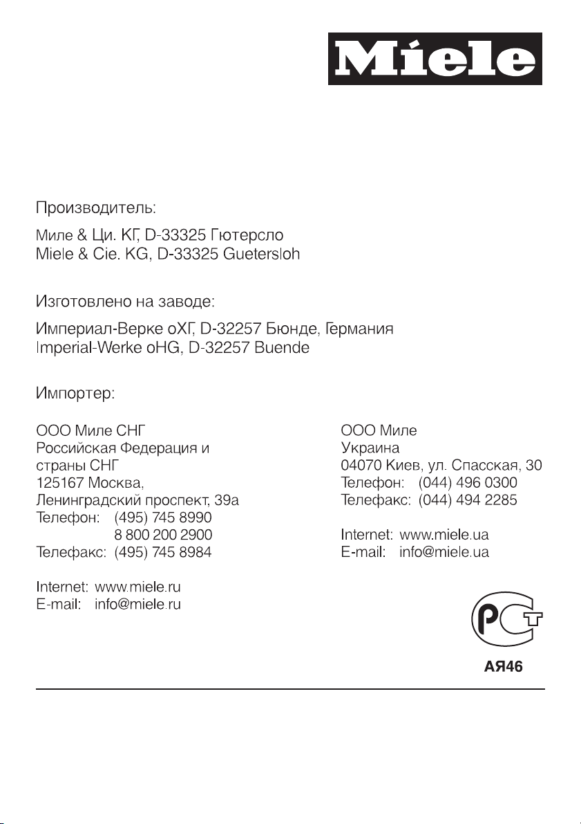 стоятельно, обращайтесь, пожалуйста, в сервисную службу Miele.