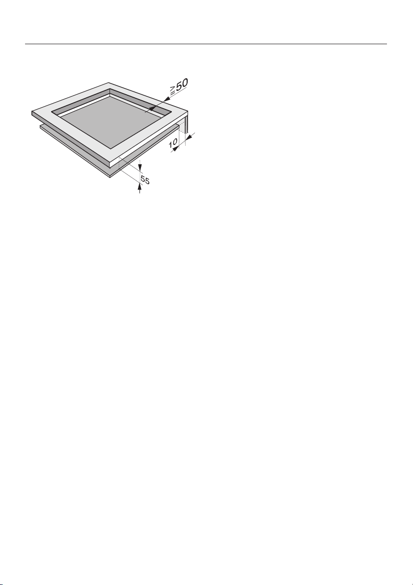 f 50 mm de distância mínima entre o revestimento da parede e o corte no tampo.