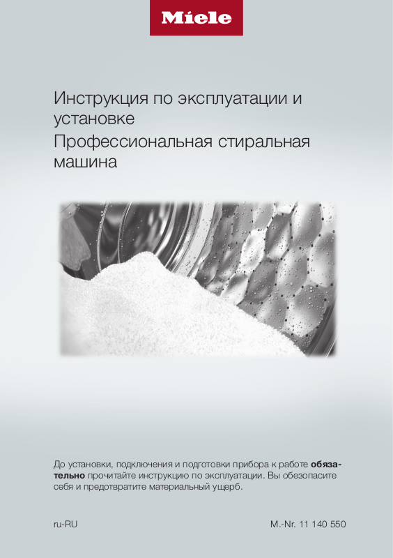 В соответствии с нормой IEC60335-1 компания Miele настоятельно рекомендует ознакомиться с главой об установке стиральной машины и следовать указаниям и предупреждениям