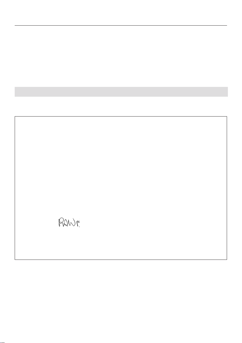 ThisStatement of Compliance confirms this Miele product fully complies with the