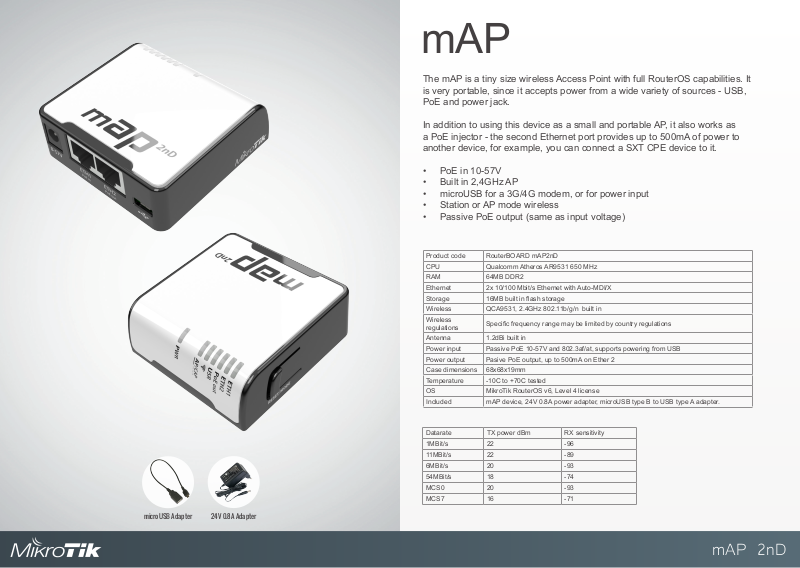 The mAP is a tiny size wireless Access Point with full RouterOS capabilities. It