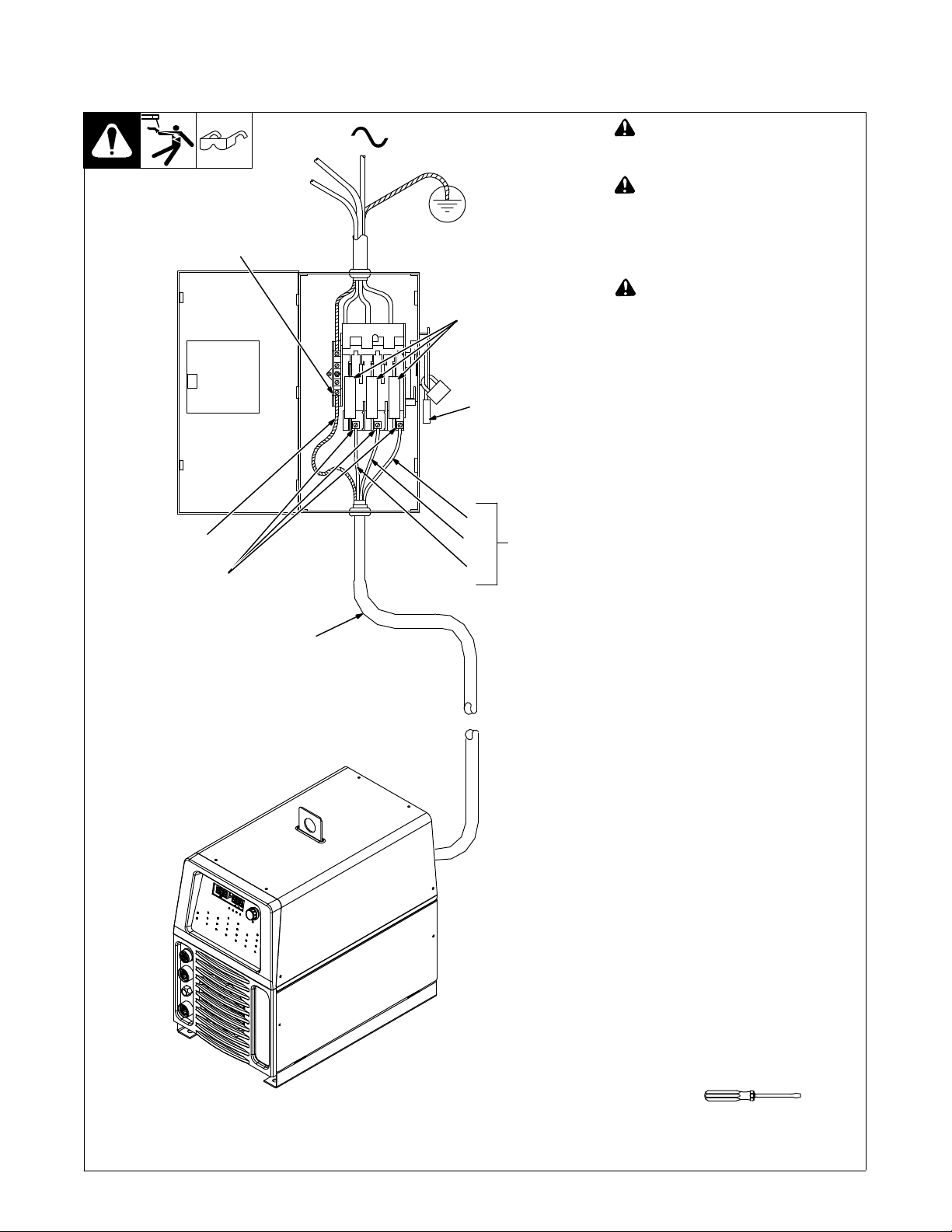 svetstråden, spänningsförande. Felaktigt installerad