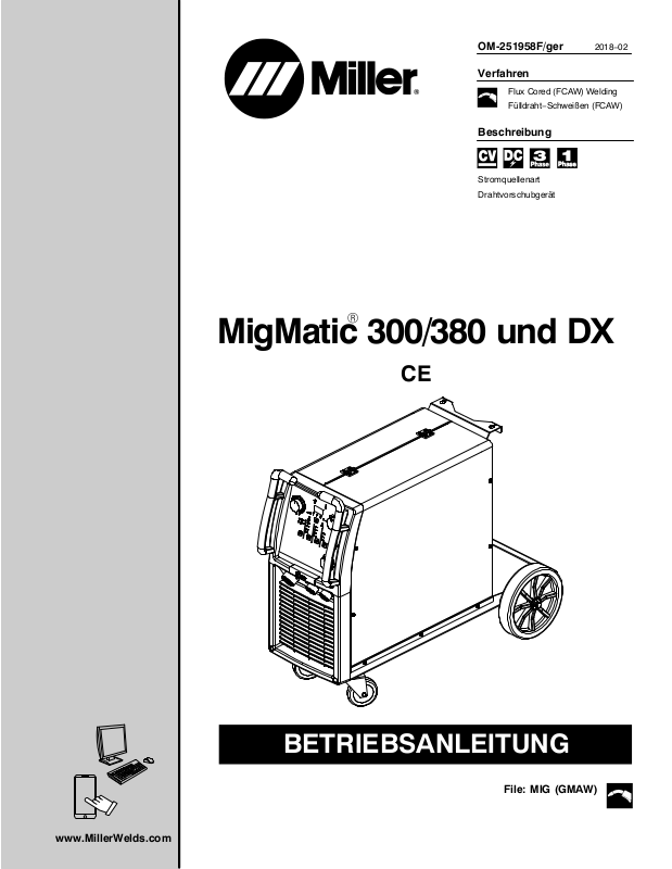 ÜBERSETZUNG DER ORIGINAL BEDIENUNGSANLEITUNG − GEDRUCKT IN DER V.S. 2018 Miller Electric Mfg. LLC 2018-01