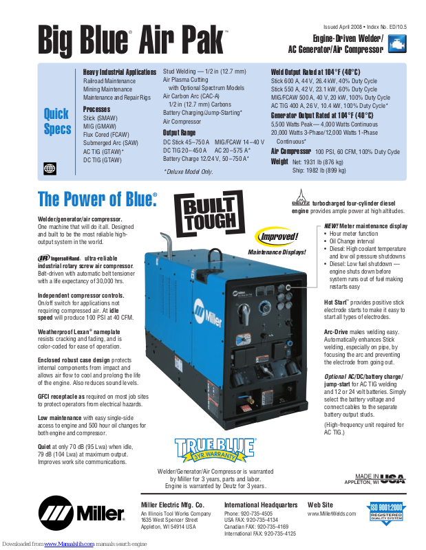 AC TIG 400 A, 26 V, 10.4 kW, 100% Duty Cycle*