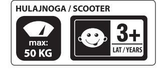 Purtati echipament de protectie! Nu se va utiliza pe drumuri publice!Sarcina maximă – 20/50 kg. Nu lasati copilul nesupravegheat. Jucării trebuie utilizat cu precauție, deoarece calificare este necesară pentru a evita cădere sau coliziune rănirea utilizatorului sau terților. Inainte de folosire se va verifica dacă produsul este montat corect. Jucăria nu are o frână. Nu folositi jucăria dacă este prezentat piese deteriorate sau lipsa. Produsul se va păstra în spațiu uscat. Dacă este ud, se vor usca elementele metalice pentru a evita coroziunea. Nu folositi jucăria dacă copilul nesupravegheat Nu tilizati piese de schimb, altele decât cele aprobate de către producător Jucăria este destinata utilizarii de catre o singură persoană. Nu se utilizeaza Simultan de către mai multi copii Nu trageti jucăria dupa caruta, masina sau alte vehicule! Nu rageti guicăni dupa caruta, masina sau alte vehicule!