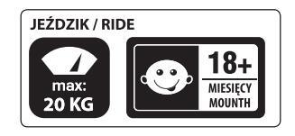 1) Всегла пользуйтесь спортивной обувью и зашитным снаряжением во время езлы на игрушка. 2) Нельзя использовать для передвижения по дорогам. 3) Максимальная нагрузка 20/50 кг 4) Во время езды на игрушка ребенок должен находиться под присмотром взрослого и быть все время в зоне его ... 5) Использование игохинки требует навыков пространственной ориентации и управления, в случае их отсутствия существует угроза паления или столкновения, которые могут привести к травме пользователя или третьих лиц 4) Не используйте изруги собла с самасноје насти, которог рекомендуст и оповодителот. 8) Не используйте игрушка на неровной, ухабистой, отвесной поверхности и вблизи открытых волоемов. 9) Ребенок всегла должен держать обе руки на руде 10) На игрушка одновременно может пользоваться только один ребенок. 11) На игрушка никогда не может быть на буксире у другого автомобиля или велосипеда 12) На игрушка нельзя использовать для буксировки других транспортных средств 13) Эта игрушка не имеет тормоз.