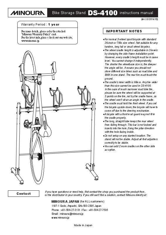 or the distributor in your country. If you still can't nd a solution, contact Minoura directly at: