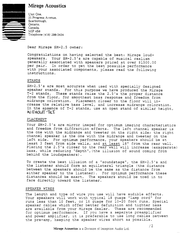Mirage SM-2.5 Guide