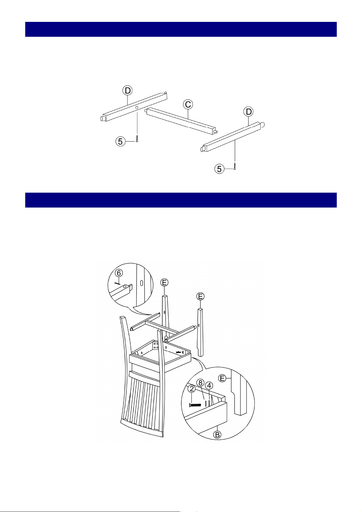 Attach middle stretcher (C) to side stretchers (D) with short screws (5). Tighten with a screwdriver.