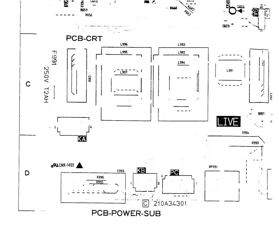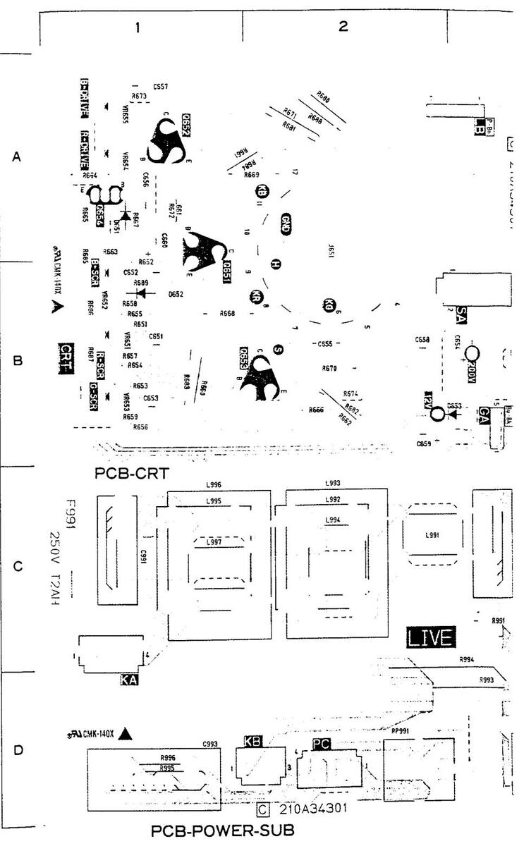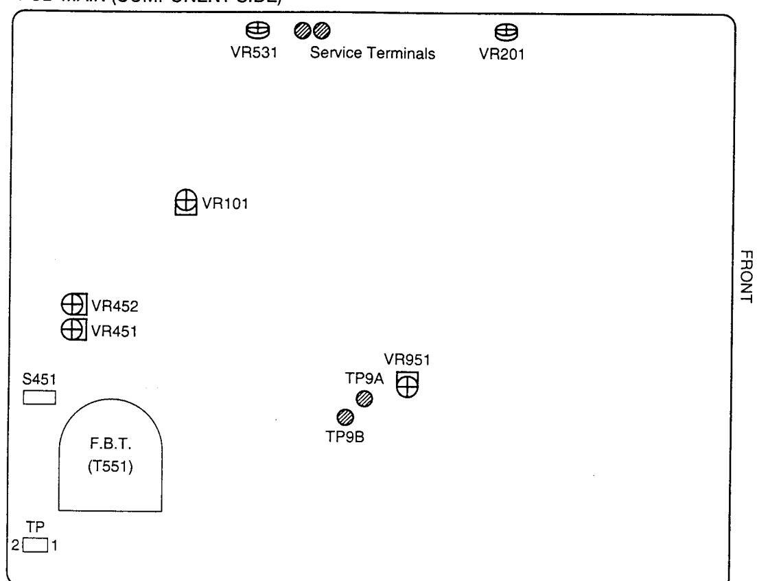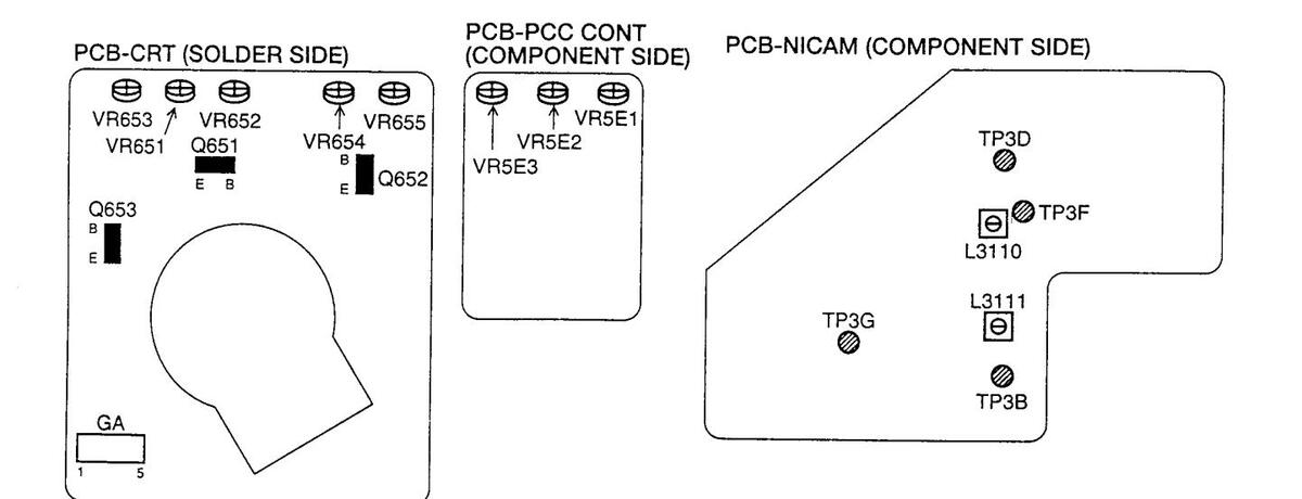 When replacing the cathode ray tube use only the designated replacement part since it is a critical component with regard to X-Radiation as noted above(No high-voltage adjustments are provided). The high-voltage specification is described on cover page.