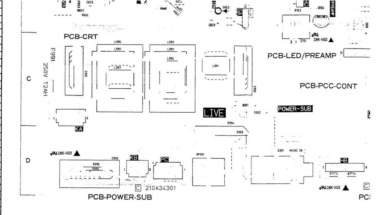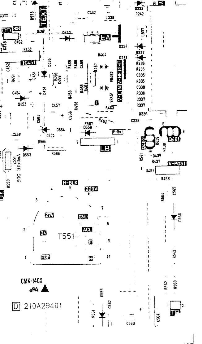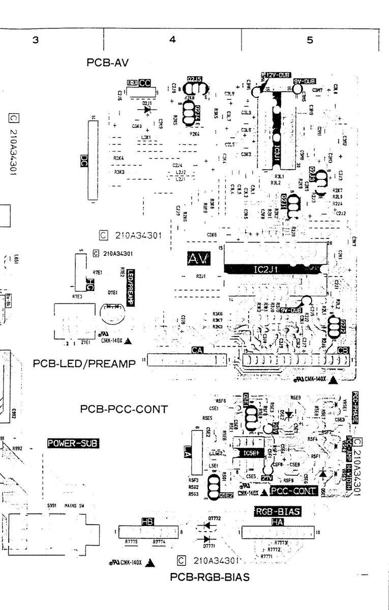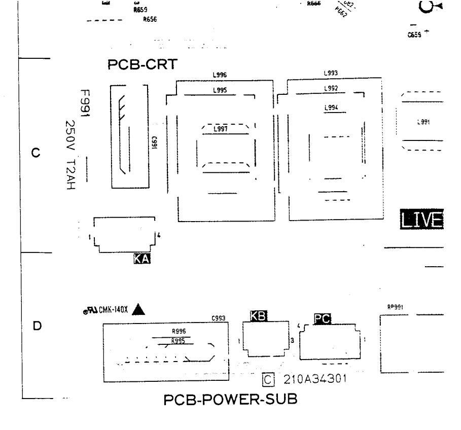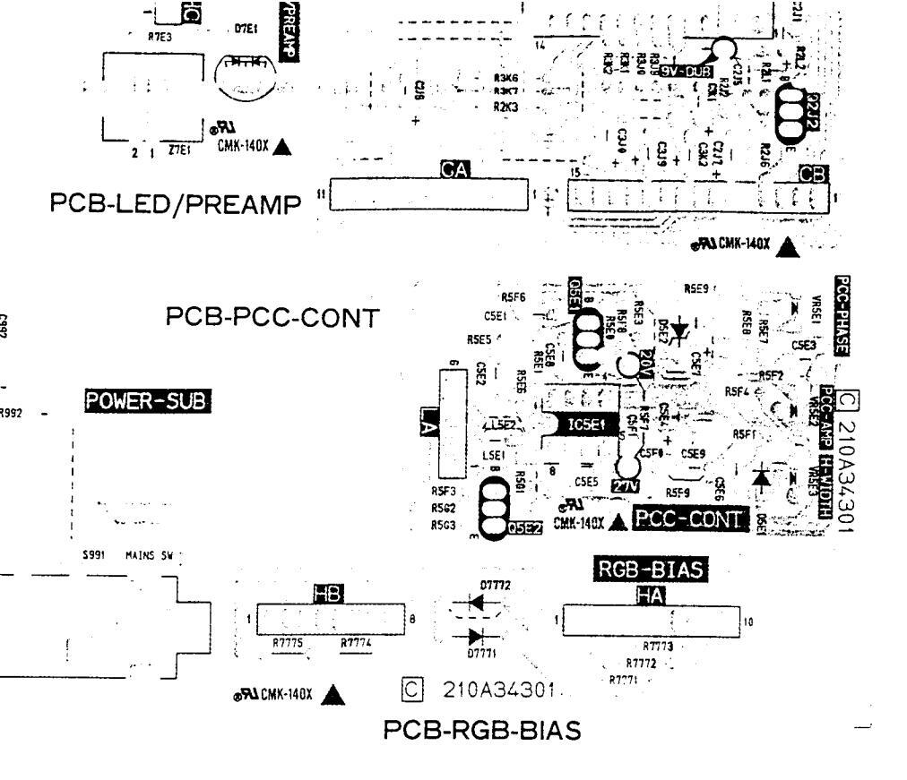 When replacing the cathode ray tube use only the designated replacement part since it is a critical component with regard to X-Radiation as noted above(No high-voltage adjustments are provided). The high-voltage specification is described on cover page.