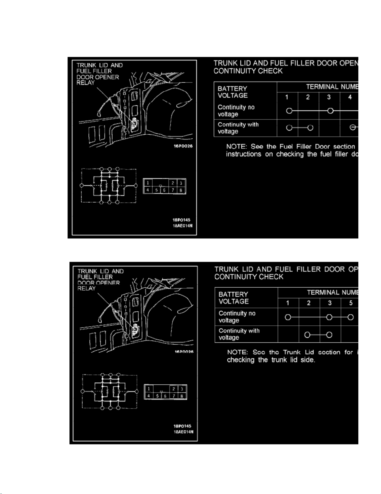 Trunk Lid And Fuel Filler Door Opener Relay Continuity Check