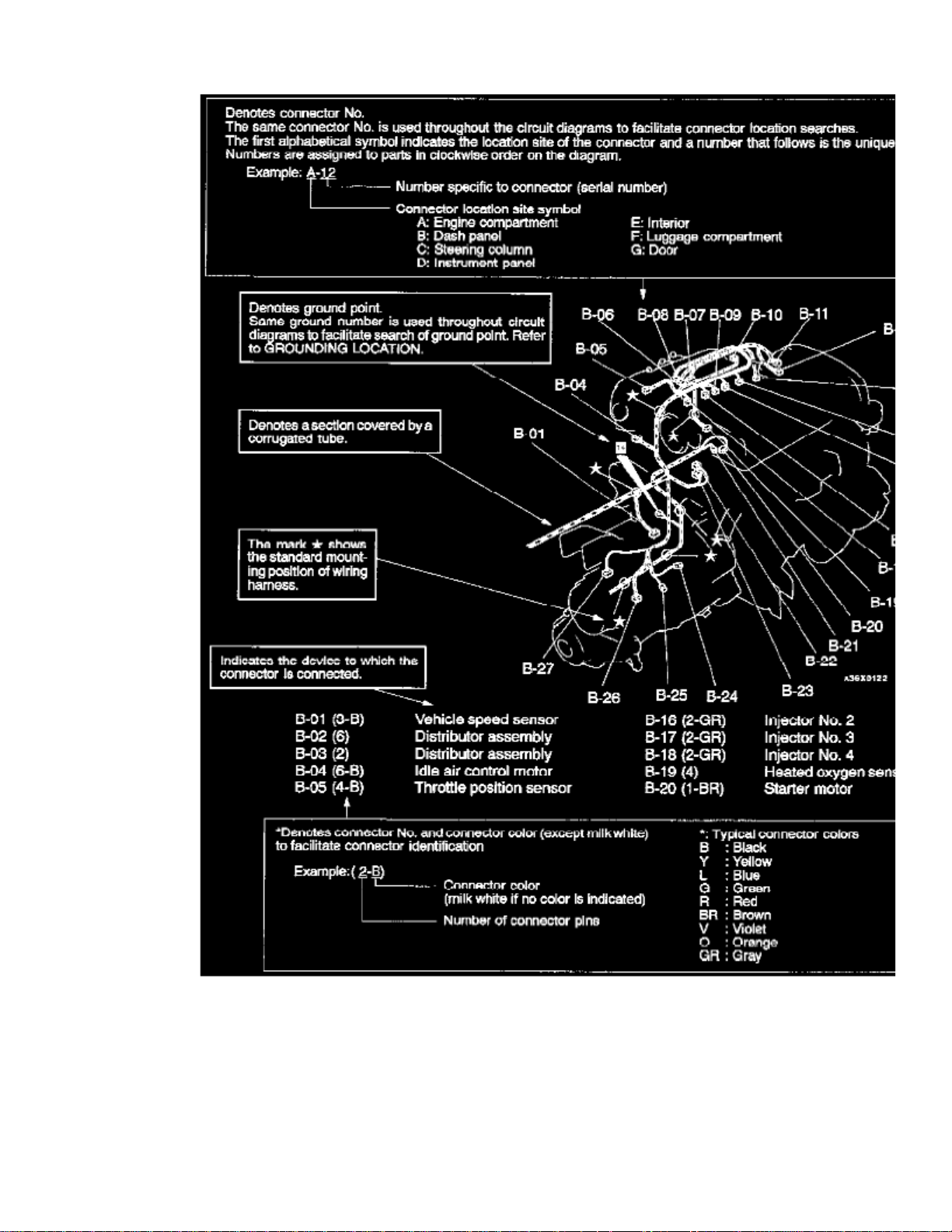 The wiring harness diagrams clearly show the connector locations and harness routings at each site on actual vehicles.