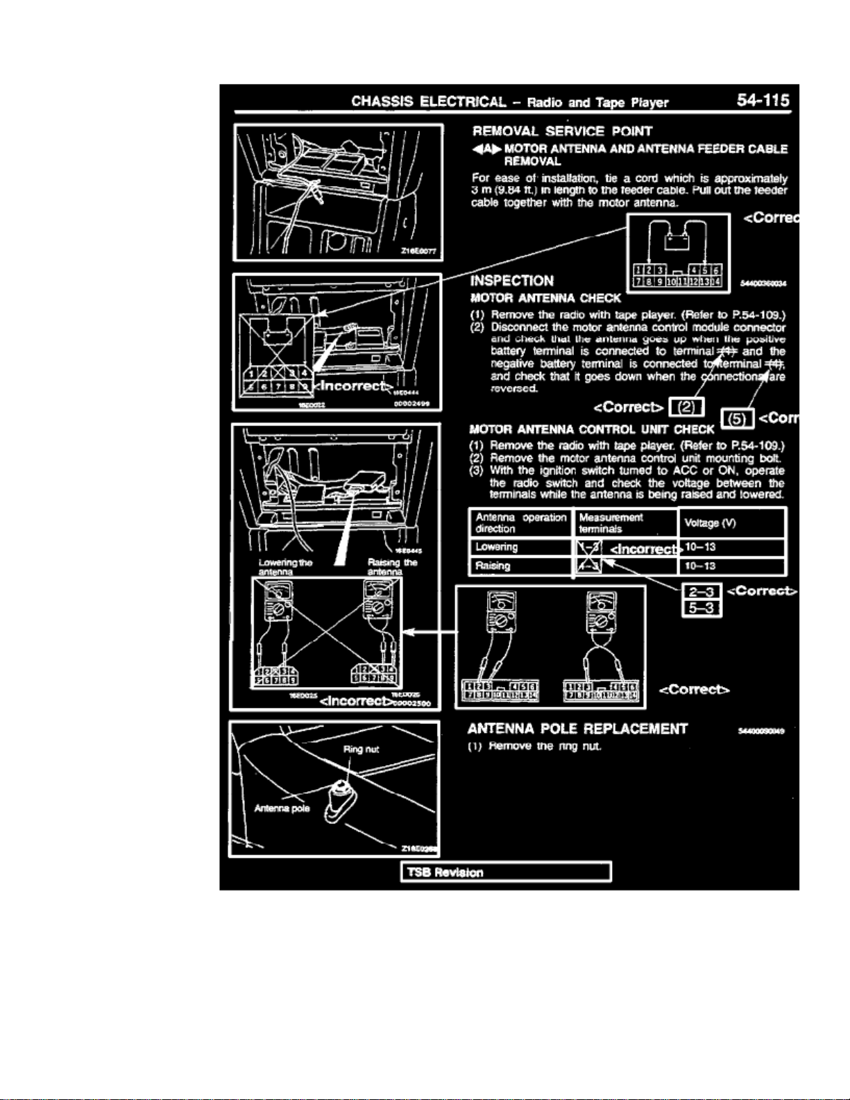 1996 Montero Service Manual, Volume 2, Page 54-115Correct the motor antenna and control unit inspection procedures as shown.