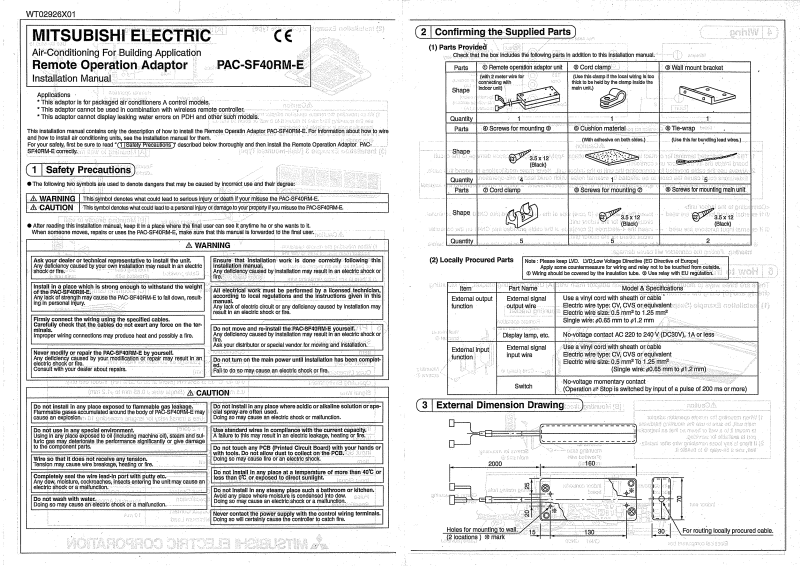 Mitsubishi PAC-SF40RM-E Installation Manual