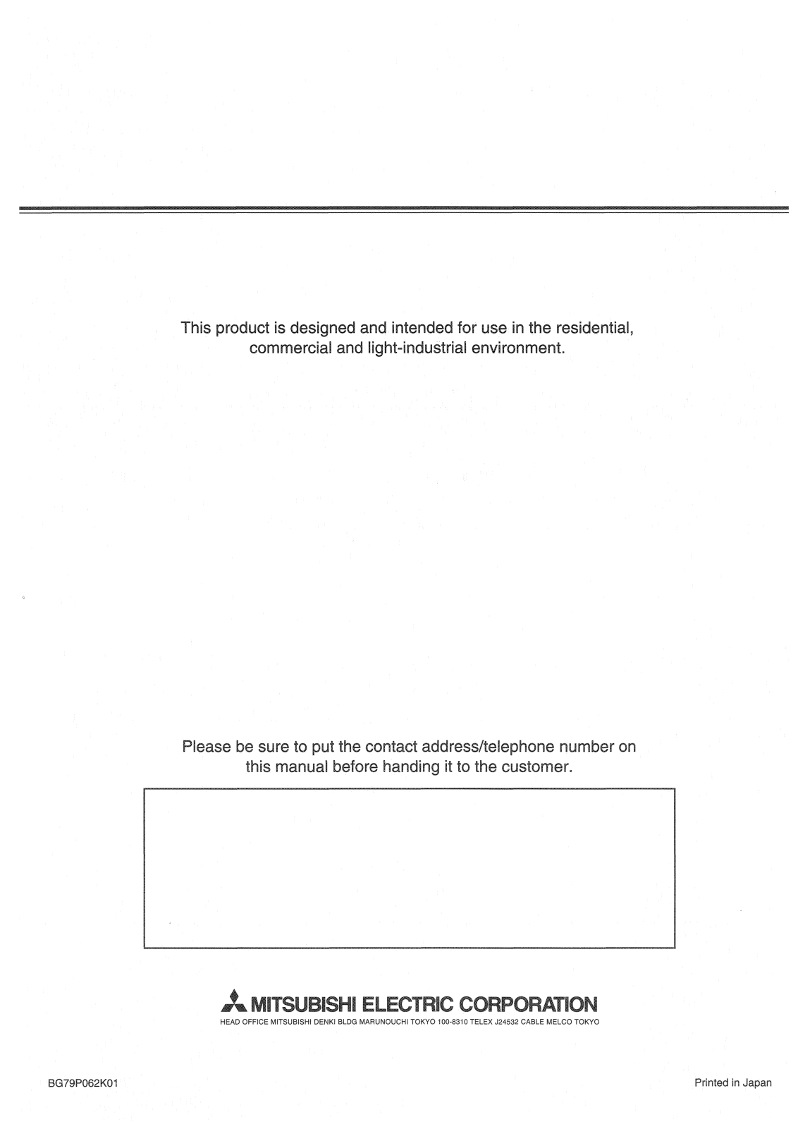 Mitsubishi Electronics PKH-2.5 3FKA, PHK-4FKSA User Manual