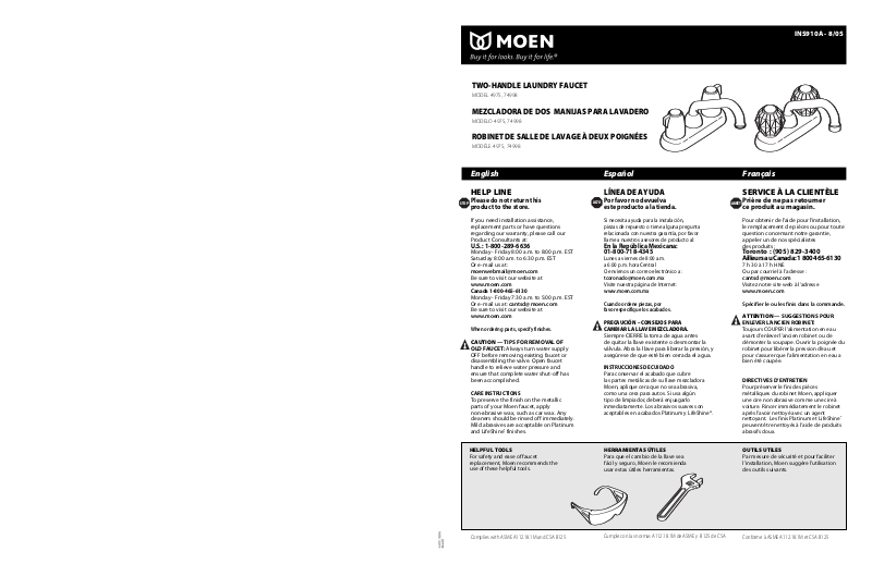 garantie, Moen s'engage à fournir GRATUITEMENT