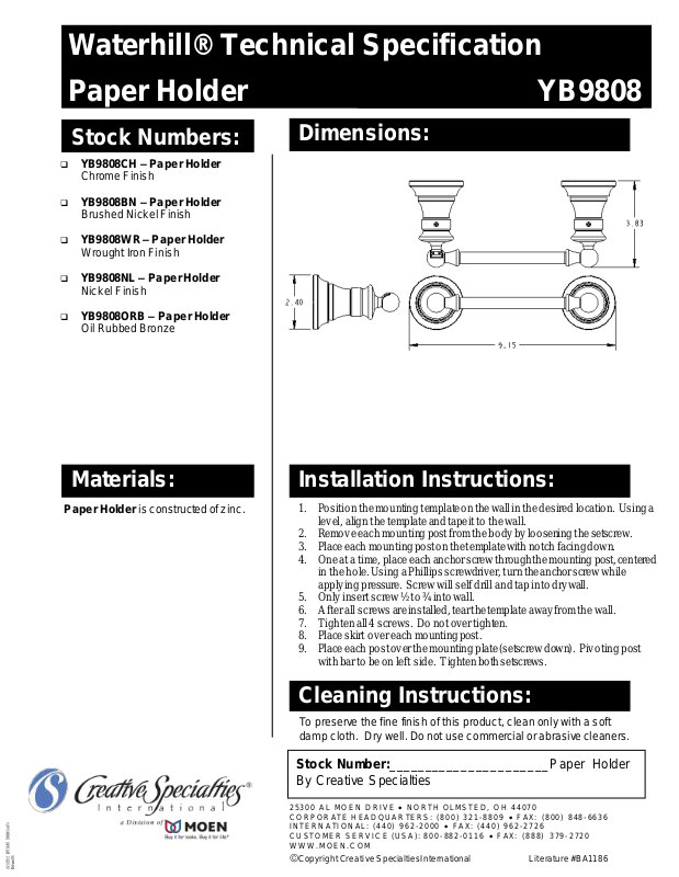 damp cloth. Dry well. Do not use commercial or abrasive cleaners.