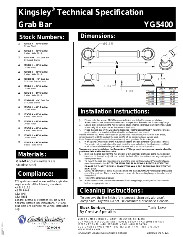 Note: Diagonal/angled installation is possible only with grab bars 24 in. or longer.