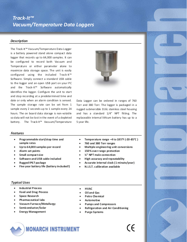 Monarch Instrument Vacuum Track‐It ‐760 Data Sheet
