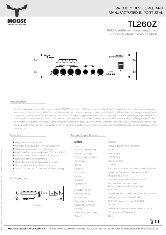 Public address amplifier with a power up to 300W rms. The TL260Z offers a variaity of input possibilities for all kinds of connection