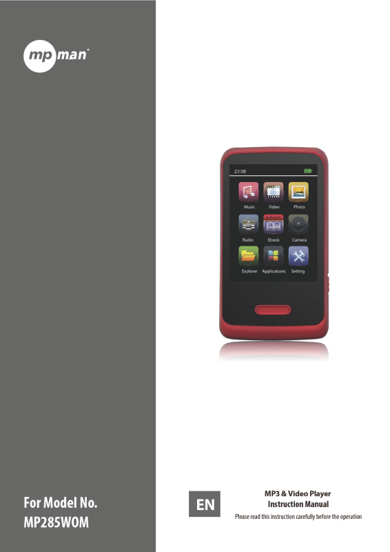 MP4 player is supplied of a rechargeable battery. It is advised to long charge the player at first use!