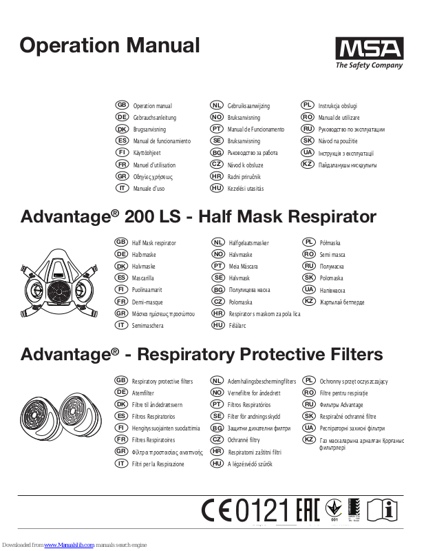 The half mask and the filters described in this manual are in accordance with Directive 89/686/EEC and are tested and certified by the Institut für Arbeitsschutz