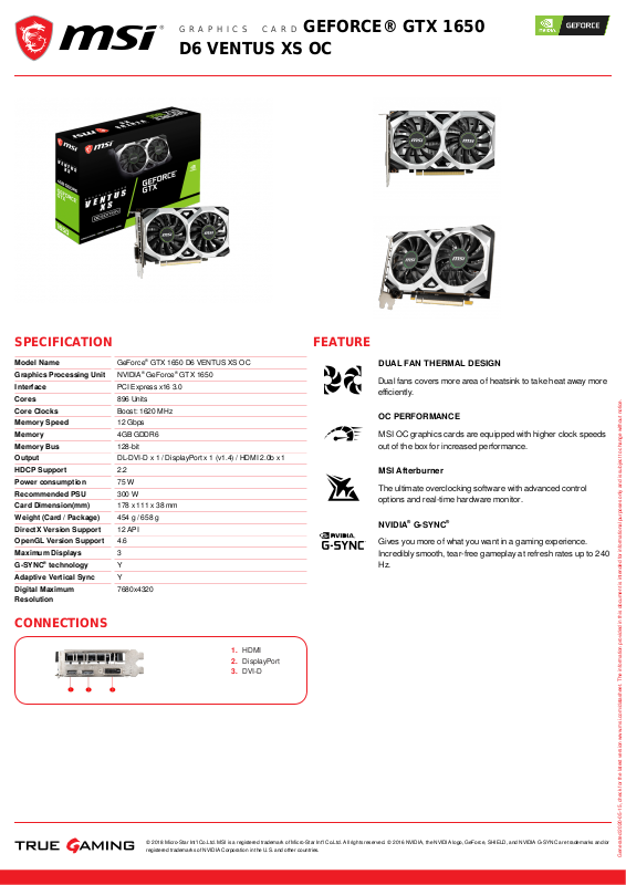 GeForce® GTX 1650 D6 VENTUS XS OC