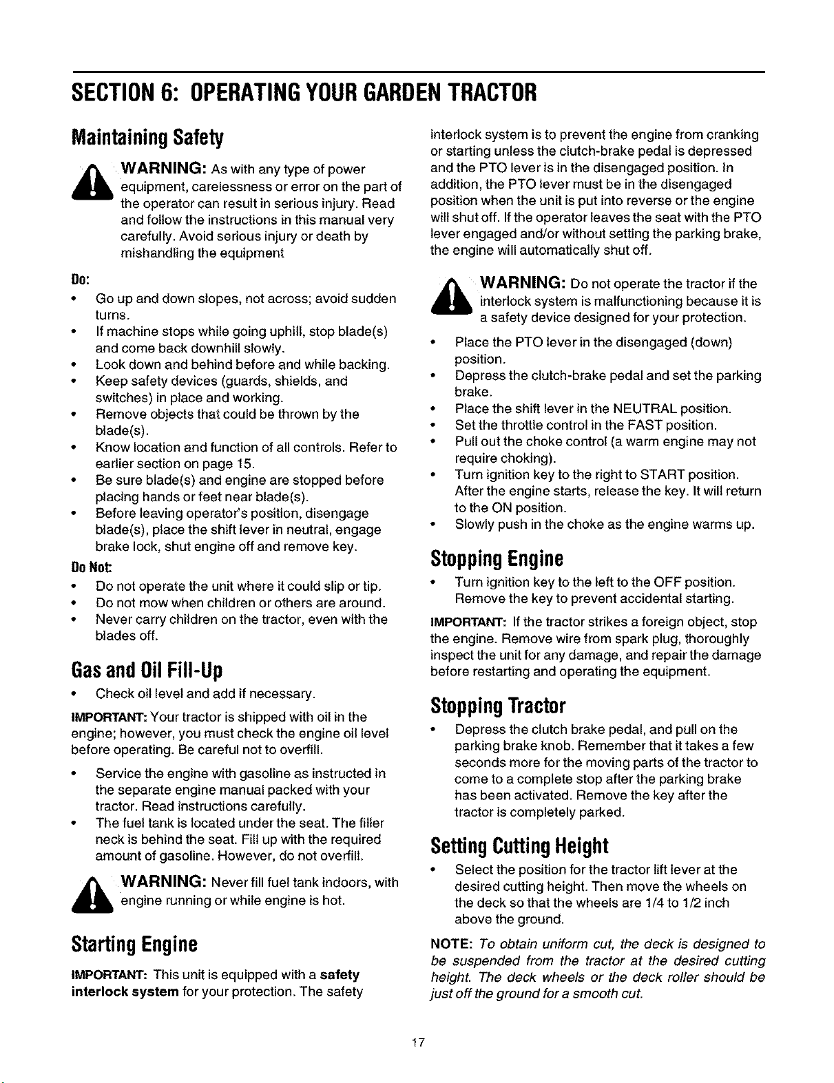 This Operator's Manual is an important part of your new Garden Tractor. Itwill help you assemble, prepare