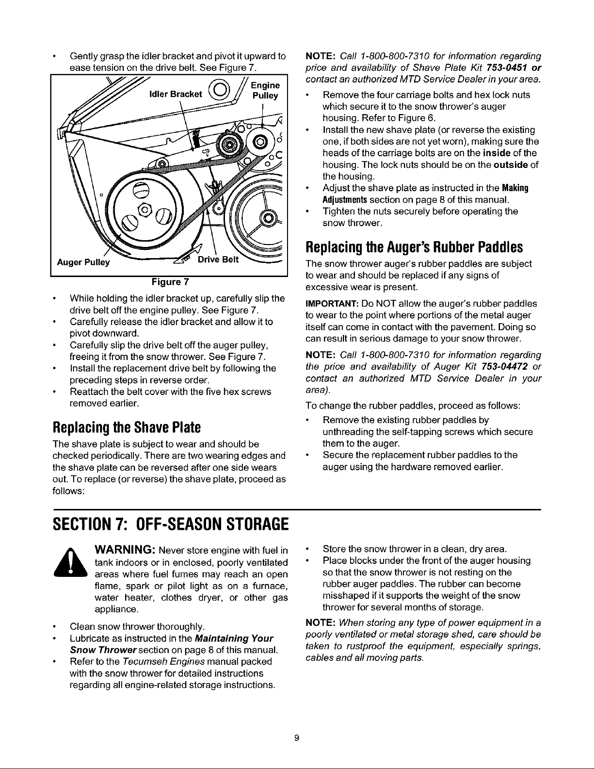 Maintaining Your Snow Thrower .............................................................................................. 8
