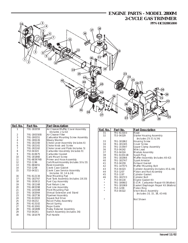 ENGINE PARTS - MODEL 2800M