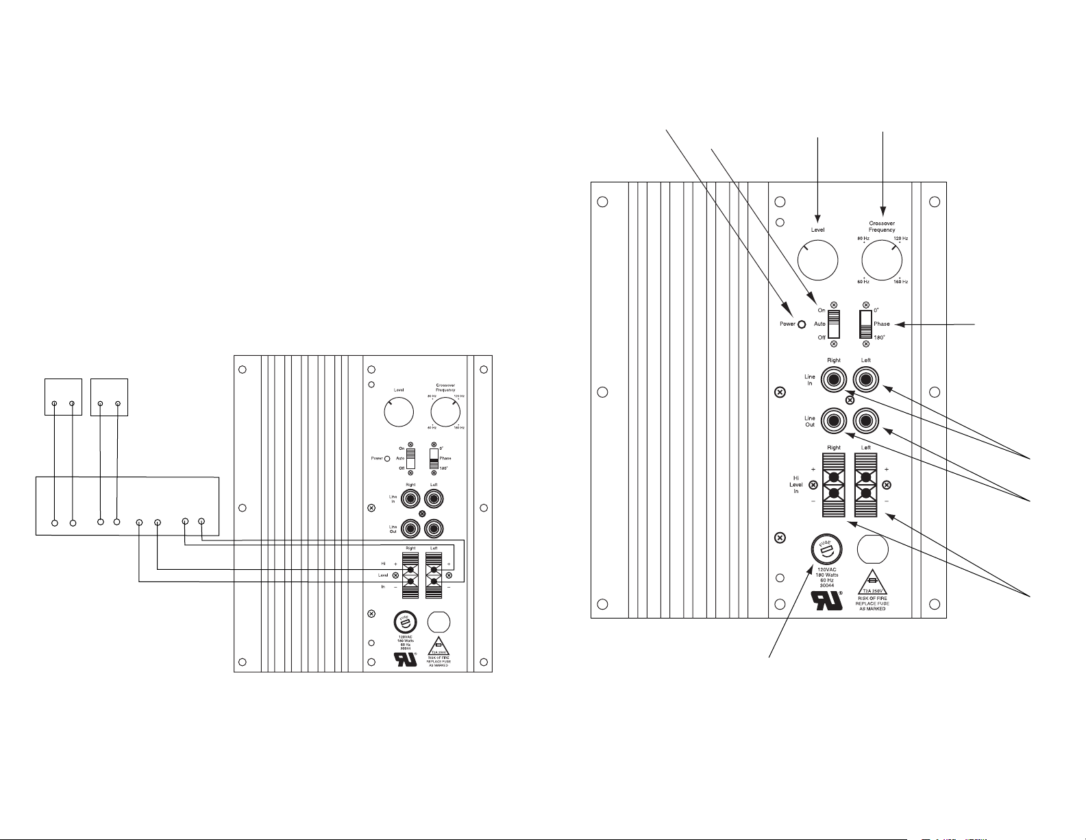 subwoofer’s speaker level input terminals as well as to your main stereo