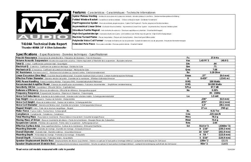 - Masa en movimiento del altavoz - Poids de la membrane - Bewegte Masse des Subwoofers