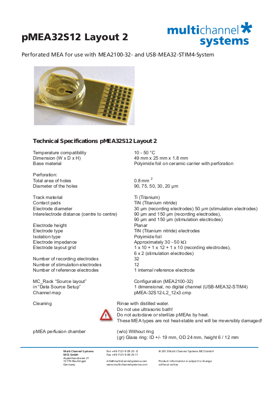 Perforated MEA for use with MEA2100-32- and USB-MEA32-STIM4-System