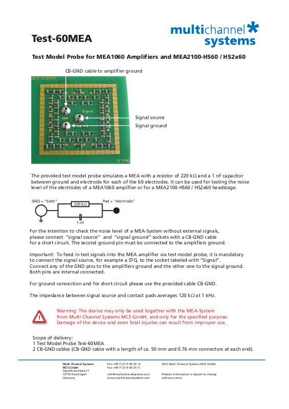 from Multi Channel Systems MCS GmbH, and only for the specified purpose.