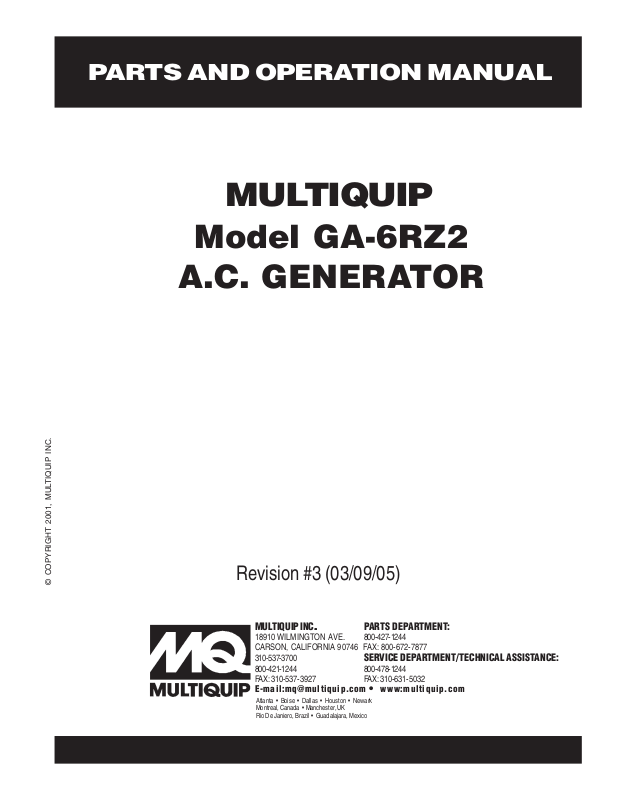 PAGE 4 — GA-6RZ2 A.C. GENERATOR — PARTS & OPERATION MANUAL — REV. #3 (03/09/05)
