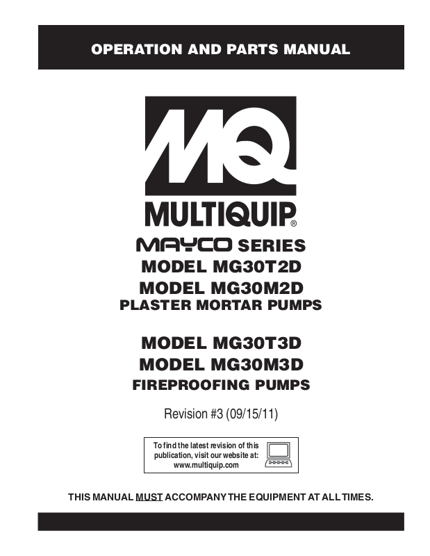 PAGE 4 — MAYCO MG-30 PUMP — OPERATION AND PARTS MANUAL — REV. #3 (09/15/11)
