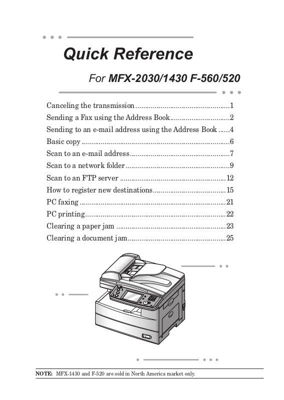 NOTE: MFX-1430 and F-520 are sold in North America market only.