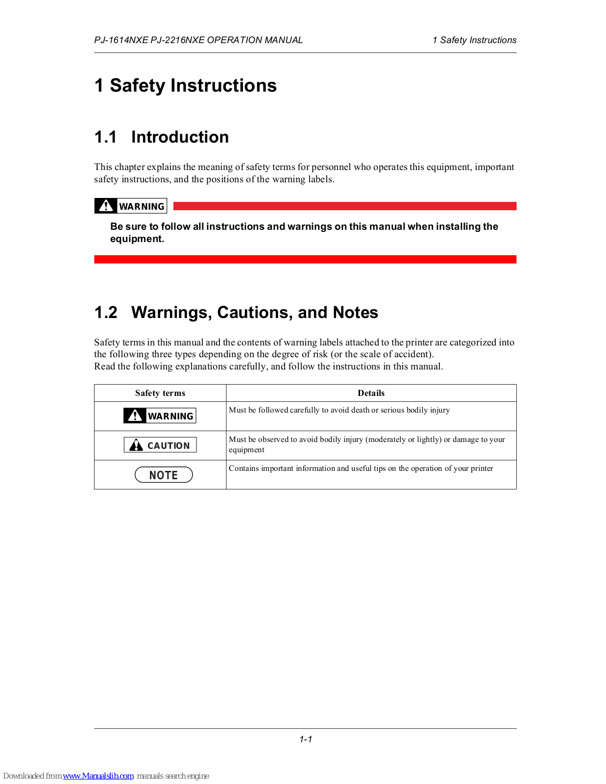 MUTOH PJ-1614NXE, PJ-2216NXE User Manual