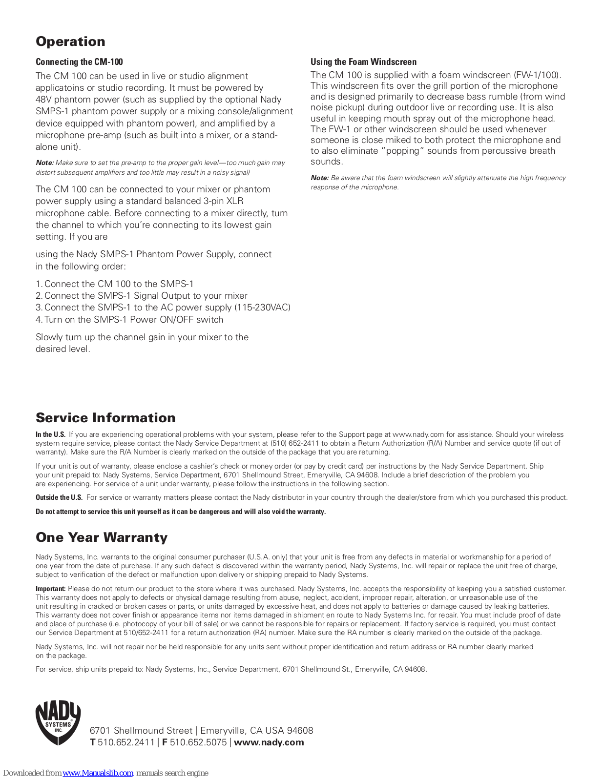 Nady Systems CM-100 User Manual