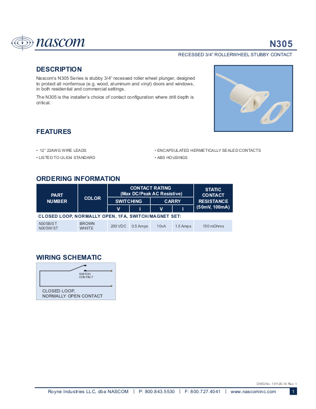 Nascom’s N305 Series is stubby 3/4” recessed roller wheel plunger, designed