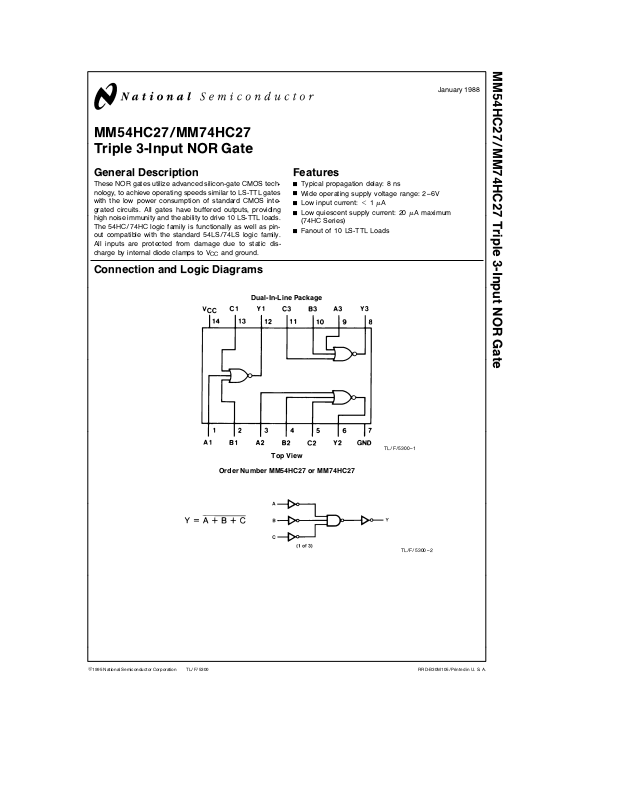 MM54HC27/MM74HC27 Triple 3-Input NOR Gate