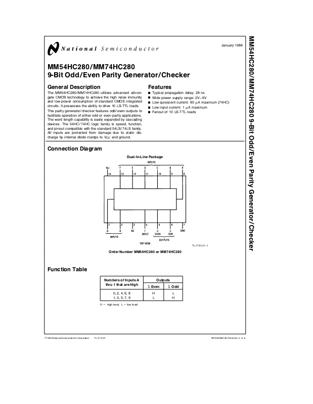 The MM54HC280/MM74HC280 utilizes advanced silicongate CMOS technology to achieve the high noise immunity