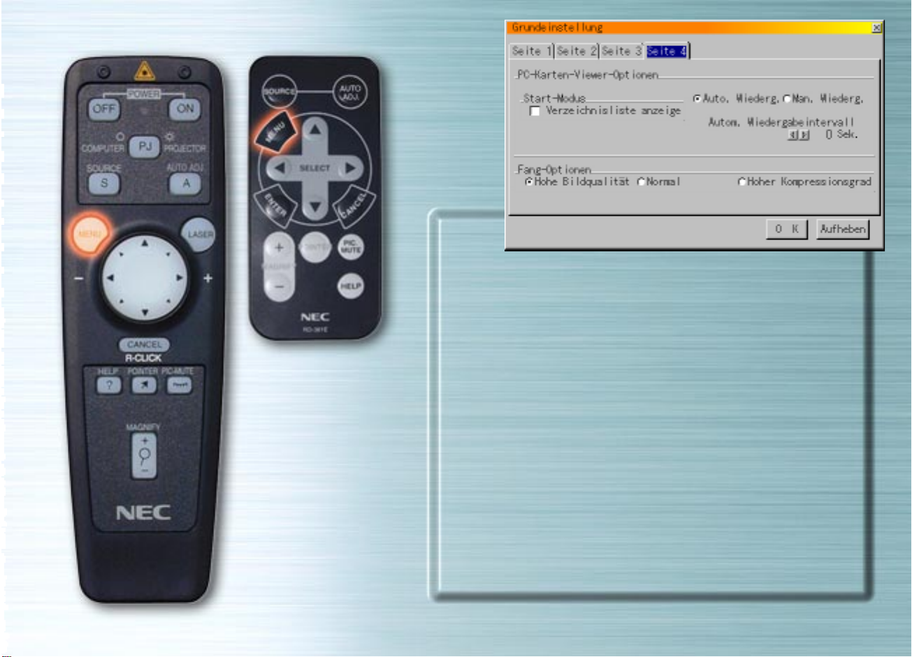 können unter Projektor-Optionen aGrundeinstellungaPCKarten-Viewer-Optionen vorgenommen werden.