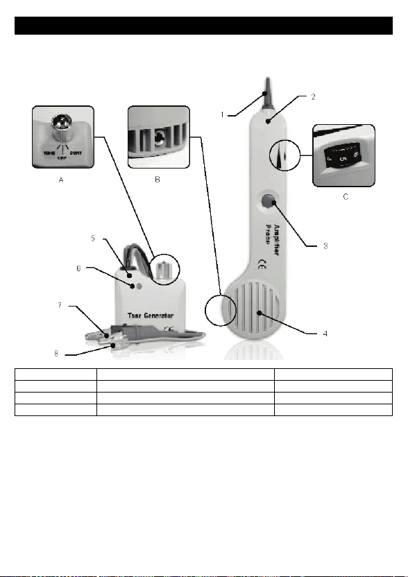 1. Tip 5. Tone generator A. 3 position toggle switch