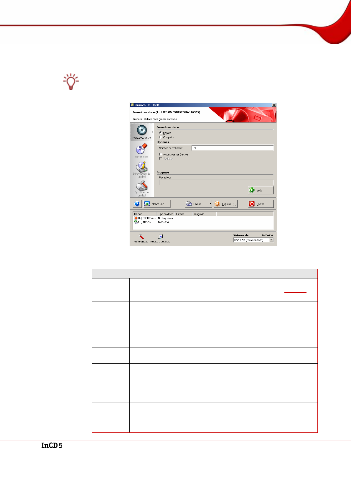 La aplicación de grabación de paquetes InCD le permite formatear discos para que también